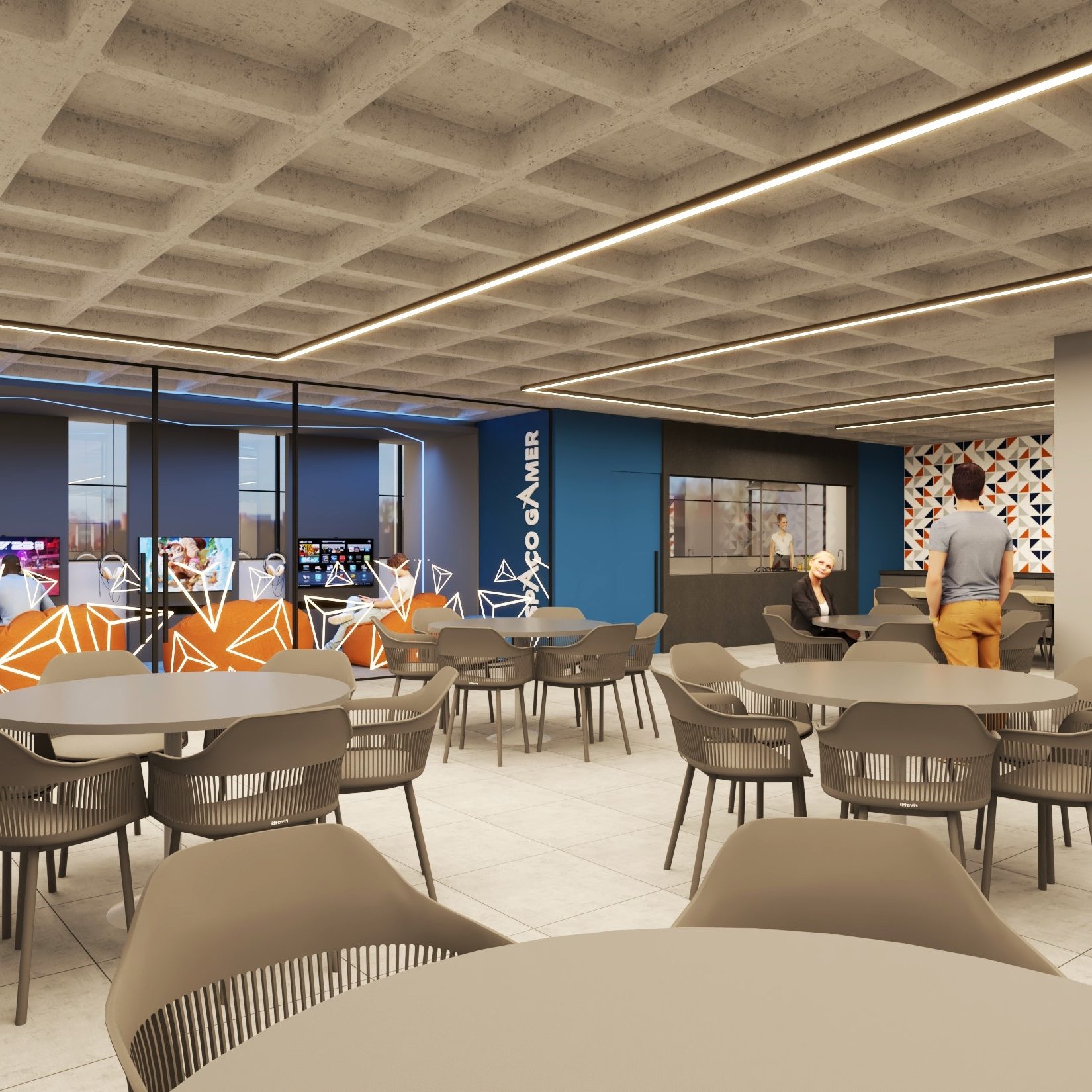 Sim, o prédio contará com várias áreas de recreação, incluindo espaço gamer, um playground exclusivo no andar da Educação Infantil, terraço de 860m² com quadra poliesportiva e espaço dedicado para eventos – ambientes essenciais para o desenvolvimento físico e social dos alunos.
